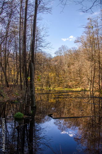© OLENA PANASIUK, Fototapeta premium Autumn landscape in the ancient Kitaevska Hermitage. Kyiv, Ukraine.