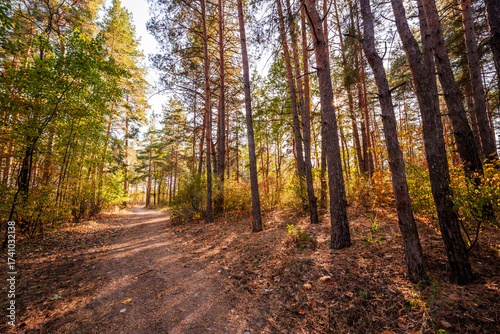 Fototapeta premium Autumn landscape in the forest. Forest in October and September. Pine trees...