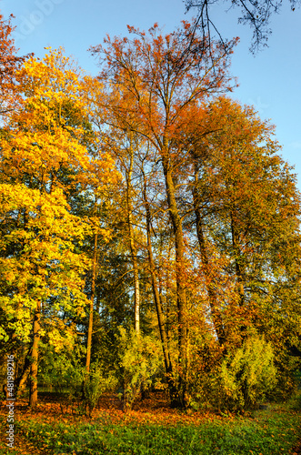 Naklejka premium Autumn landscape in the Pavlovsk Park near St. Petersburg. Autumn, 2021.