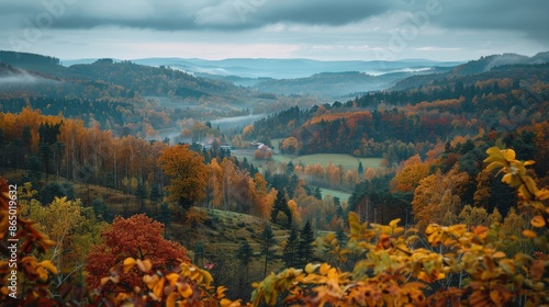 Fototapeta premium Autumn Landscape of Misty Forest Hills