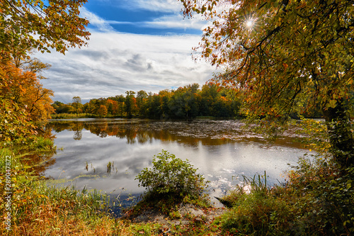 Fototapeta premium Autumn landscape on a forest lake