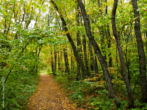 © Aspirinka, Fototapeta premium Autumn landscape with a path among forest trees