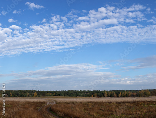 Fototapeta premium Autumn landscape with beautiful and voluminous clouds