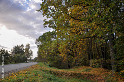 © ako-photography, Obraz premium Autumn landscape with colorful trees and road.