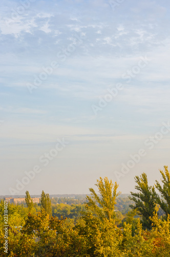 © Wingedbull, Fototapeta premium Autumn landscape with colorful trees in sunlight