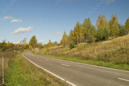 © ovcerleonid, Fototapeta premium Autumn landscape with expensive sky on background