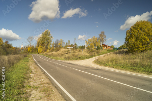 © ovcerleonid, Fototapeta premium Autumn landscape with expensive sky on background