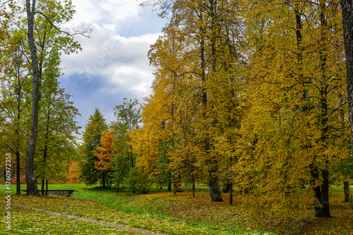 © EVGENII, Fototapeta premium Autumn Landscape with Golden Trees