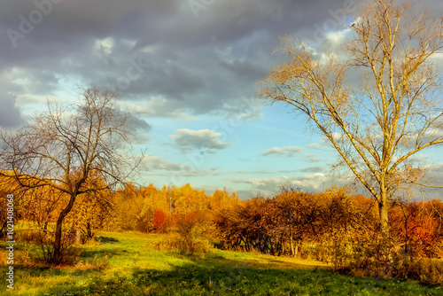 © 279photo, Fototapeta premium Autumn landscape with green grass