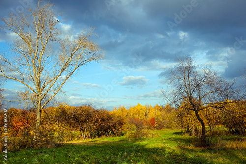 Fototapeta premium Autumn landscape with green grass