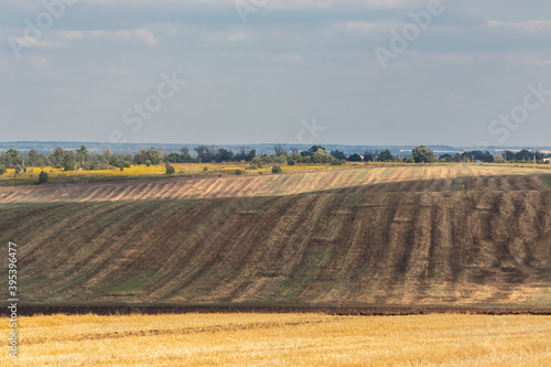 © Serge, Fototapeta premium autumn landscape with harvested and plowed fields and clouds