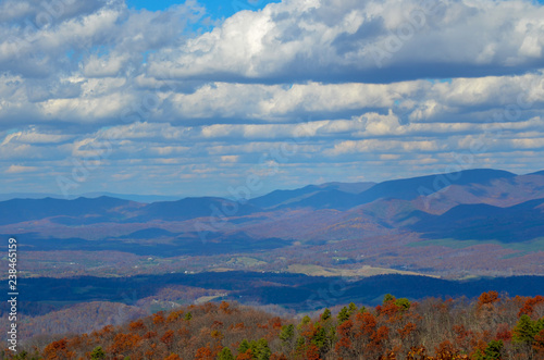 © Lorie Smith, Naklejka premium autumn landscape with mountains and blue sky