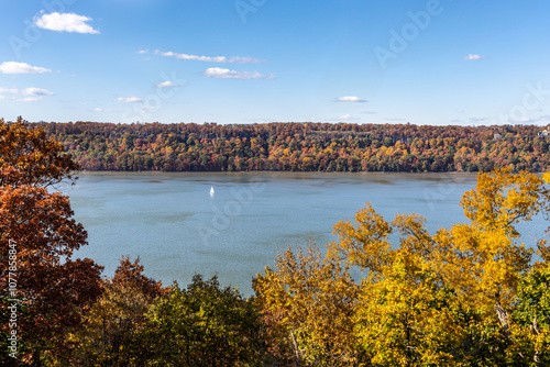© Aurora East Media, Obraz premium autumn landscape with river in New York State