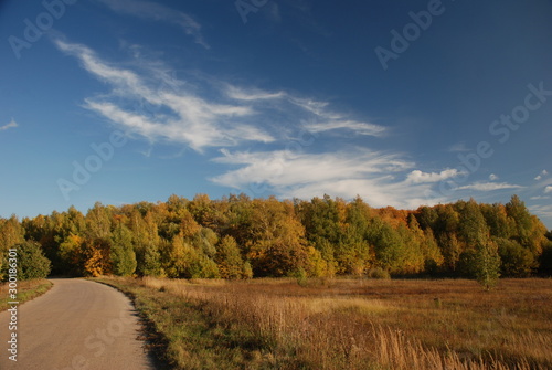 © Aleksandr, Fototapeta premium autumn landscape with road and clouds