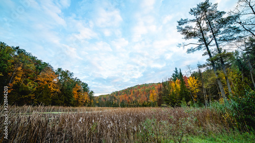 © nikhilcpatel, Fototapeta premium autumn landscape with trees and blue sky