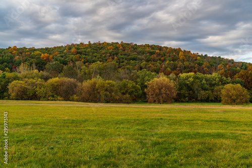 © Gerard, Fototapeta premium autumn landscape with trees and blue sky