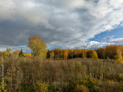 © talavietis, Fototapeta premium autumn landscape with trees and clouds