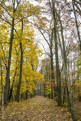 Naklejka premium Autumn Lane/A peaceful walk down the leaf-covered lane in the middle of autumn.