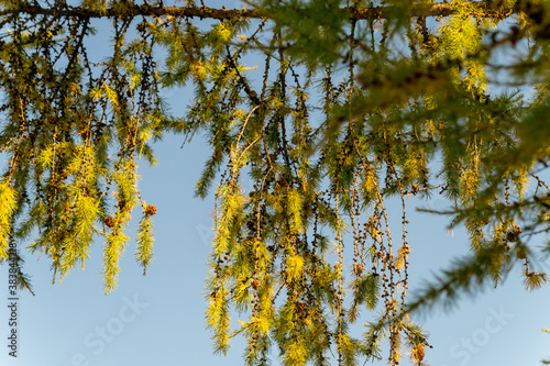 © Province_photo, Fototapeta premium Autumn larch branches against a blue sky