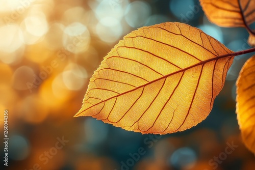 © Gery, Obraz premium Autumn leaf, backlit, forest, bokeh, nature