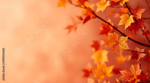 © KANAKA, Fototapeta premium Autumn Leaf on Branch with Orange Background
