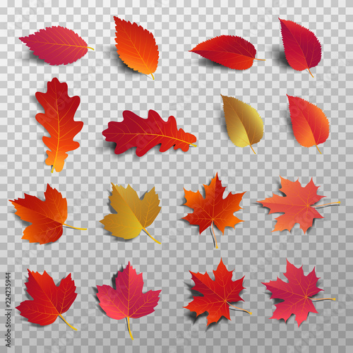 Fototapeta premium Autumn leaf pack. Realistic leave fall with shadow. Maple leaf for decorate...