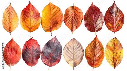 Obraz premium Autumn leaf textures in shades of red, orange, and yellow on a transparent...