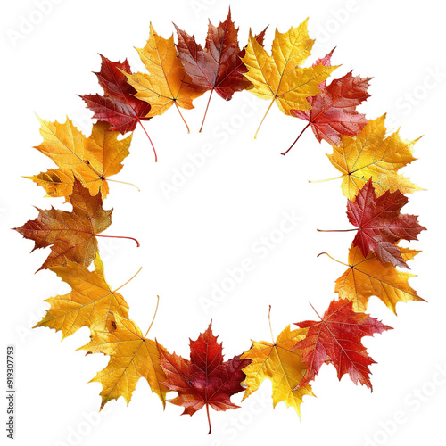 © Larisa, Fototapeta premium Autumn leaf wreath on transparent background