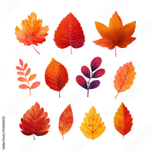 Fototapeta premium Autumn Leaves: A vibrant collection of stylized autumn leaves showcasing a...