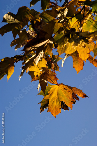 © Terence A R Watts, Fototapeta premium Autumn leaves against a bright blue sky