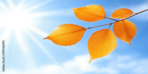 © OlgaSolo, Obraz premium autumn leaves against blue sky