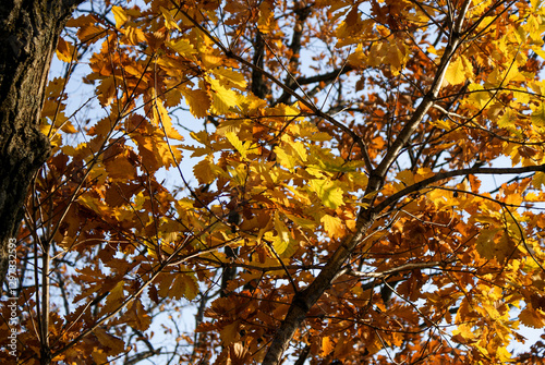 Fototapeta premium autumn leaves against blue sky