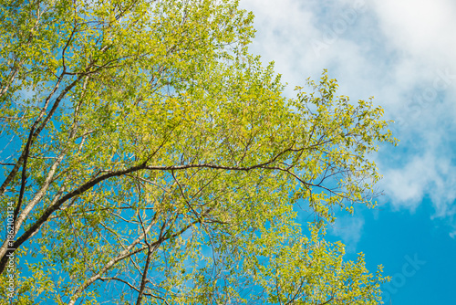 © tanatip, Fototapeta premium autumn leaves against blue sky