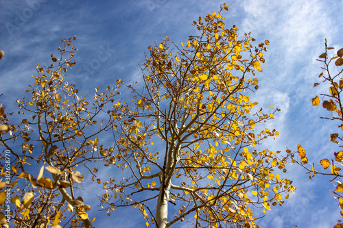 Fototapeta premium autumn leaves against blue sky