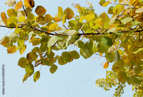 © Natalija, Fototapeta premium autumn leaves against blue sky