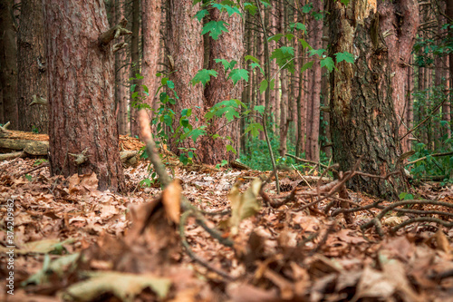 Obraz premium Autumn leaves along the forest floor in Provin Trails