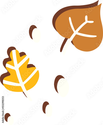 Fototapeta premium Autumn leaves and acorns are floating on transparent background in flat design, copy space