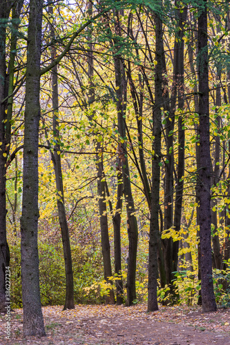 Fototapeta premium Autumn leaves and trees foliage in Kosutnjak park in Belgrade, the capital of...