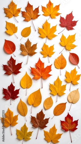 © Ayuni, Fototapeta premium Autumn leaves arranged on white background