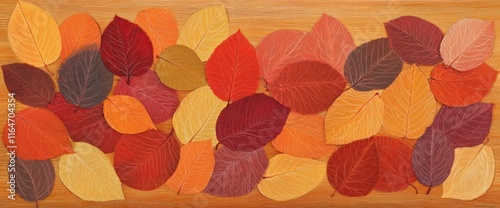 © milenialdesastudio, Fototapeta premium Autumn leaves arranged on wood.