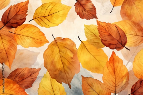 © Dzikrul Husnani, Obraz premium autumn leaves background, copy space , generative ai