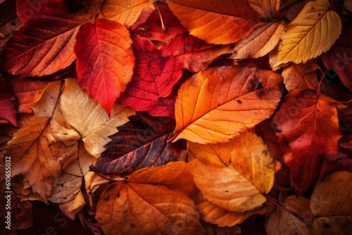 Obraz premium Autumn leaves background in warm tones of orange and red. Generative ai