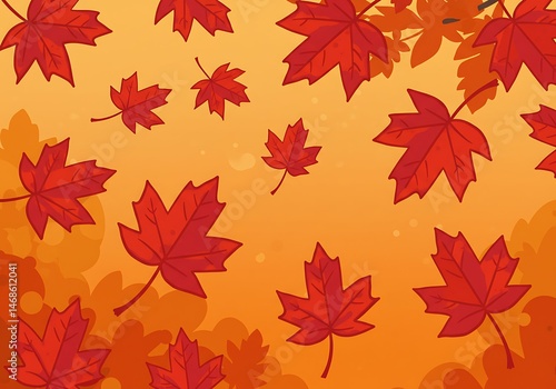 © James, Fototapeta premium Autumn Leaves Background: Red Maple Leaves Falling on Orange