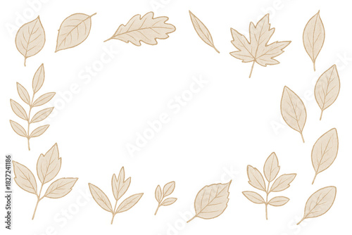 Fototapeta premium Autumn leaves border design creating a natural frame, beige foliage elements...