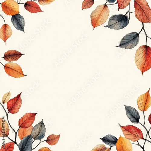 © gen_pick, Fototapeta premium Autumn Leaves Border with Neutral Background for Seasonal Cards