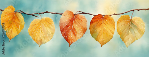 © SemangArt, Obraz premium Autumn leaves branch nature scene