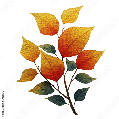 © BOJOShop, Obraz premium Autumn Leaves Branch With Warm Gradient Colors On A Transparent Background Fall