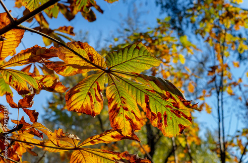 Fototapeta premium Autumn leaves - chestnut leaves details on tree