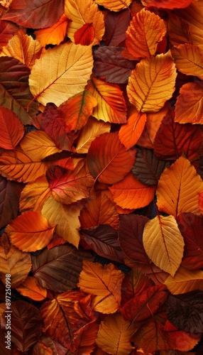 © Yeivaz, Obraz premium Autumn leaves close up background. Colorful fall leaves pattern. Macro top view
