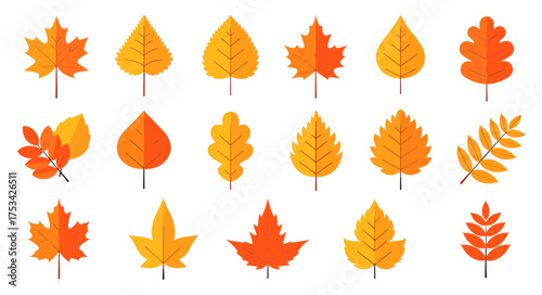 Obraz premium Autumn Leaves Collection Flat Design Icons for Fall Season